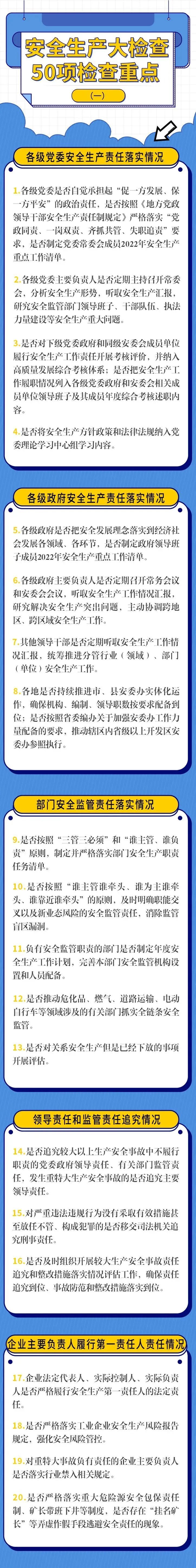 根據(jù)黨中央、國務(wù)院決策部署和全國安全生產(chǎn)大檢查工作安排,自4月中旬至6月底,國務(wù)院安委會(huì)組織16個(gè)綜合檢查組,對(duì)31個(gè)省(自治區(qū)、直轄市)和新疆生產(chǎn)建設(shè)兵團(tuán)安全生產(chǎn)大檢查情況進(jìn)行綜合督導(dǎo),并同步開展國務(wù)院2021年度省級(jí)政府安全生產(chǎn)和消防工作考核巡查及國務(wù)院安委會(huì)成員單位安全生產(chǎn)工作考核。
