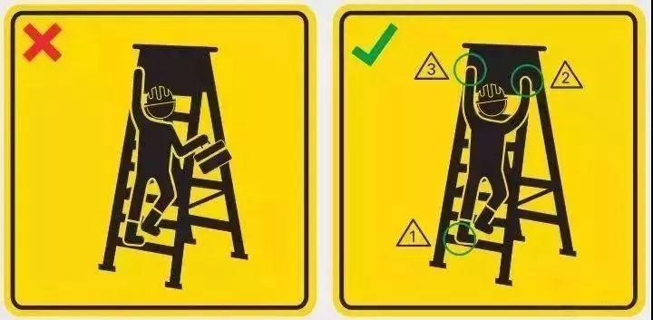 6、使用梯子時(shí),必須維持三個接觸點(diǎn)的攀爬法。