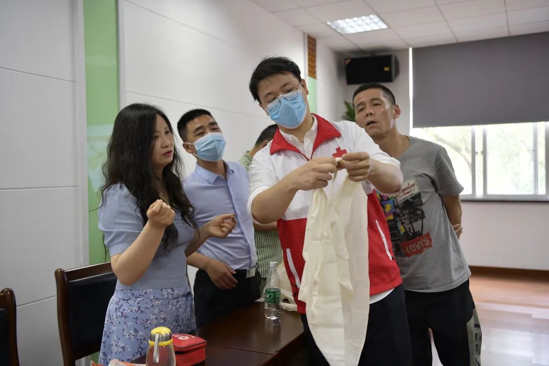 培訓課上,段老師和祁老師通過大量生動的案例講授了安全基礎知識和應急救護知識,重點針對火災處置和應急救援過程中涉及的不同場景,講解了滅火器使用、心肺復蘇、止血包扎等內容,并現場演示了心肺復蘇術的基本操作、AED的使用方法以及止血包扎技術要領。各位學員認真聆聽、仔細學習老師演示的每一個動作,并在老師的指導下進行了實操演練。
