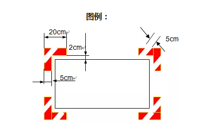 線寬60mm:不良品擺放區(qū)的劃分線(碰到三面圍墻處,第四面地面劃一條紅色實(shí)線);