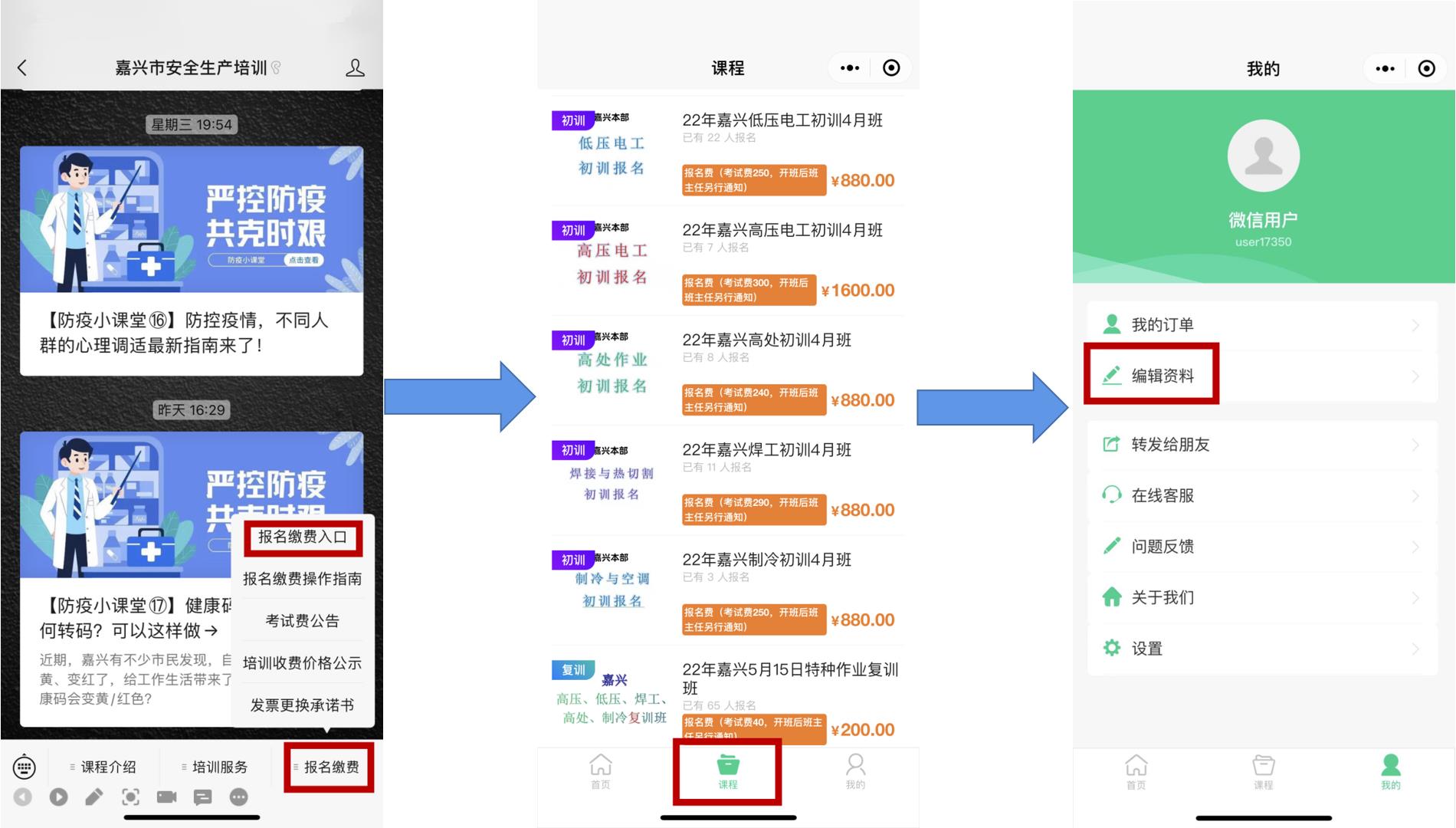 請關(guān)注“嘉興市安全生產(chǎn)培訓(xùn)”微信公眾號點(diǎn)擊“報(bào)名繳費(fèi)”→“報(bào)名繳費(fèi)入口”→“課程”,選擇相應(yīng)項(xiàng)目進(jìn)行線上報(bào)名